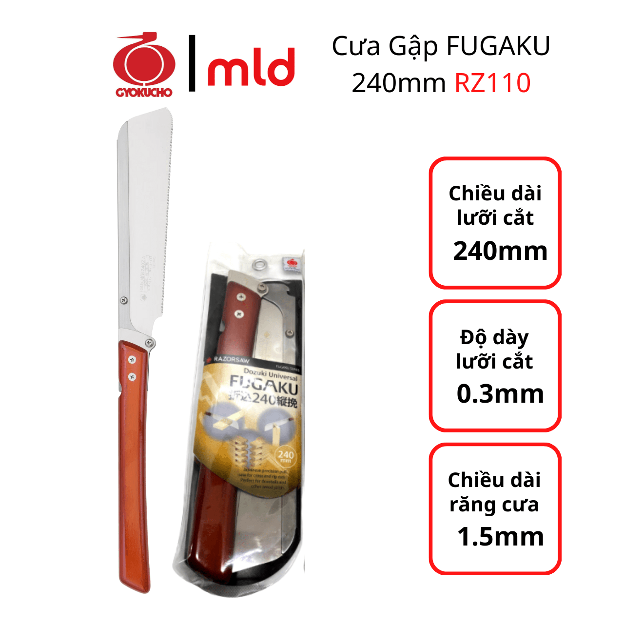 RZ110 – Dozuki Super Hard: chuyên cắt tinh, làm mộng, cắt tấm MDF, ván ép, gỗ tự nhiên, vật liệu tre, tấm laminate Formica, gỗ dán, và ván dăm (OSB)